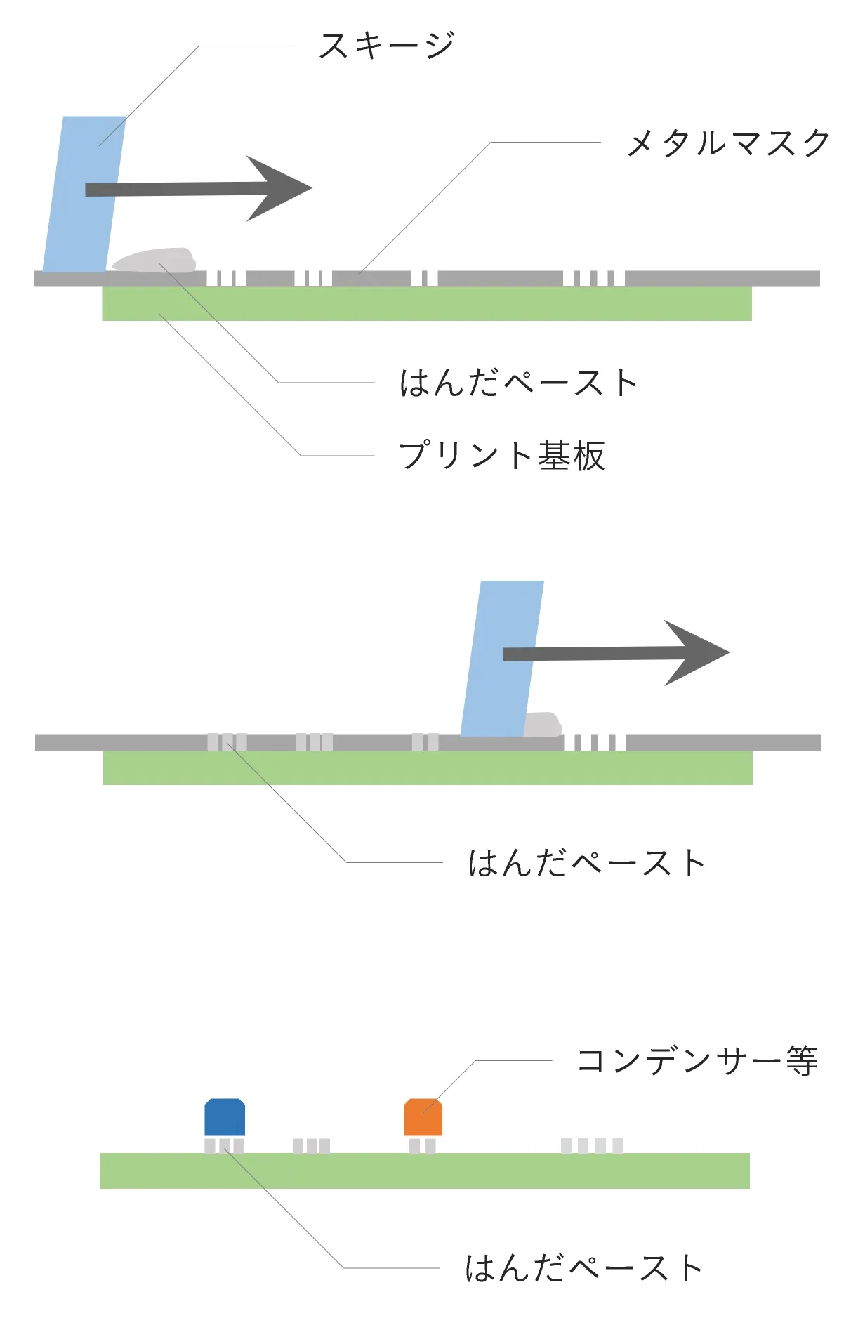 ここからは、メタルマスクが表面実装時にどのように使われ、どういった役割を果たすのかをご紹介します。
