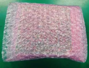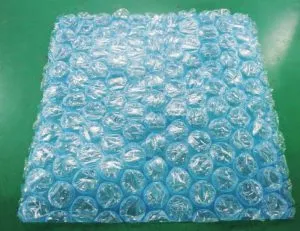 無色透明な緩衝材が一般的ですが、基板実装・OEM受託センター.com(安曇川電子工業)が利用するのは、赤や青、黄色の緩衝材です。色付きの緩衝材は、帯電防止加工が施されています。