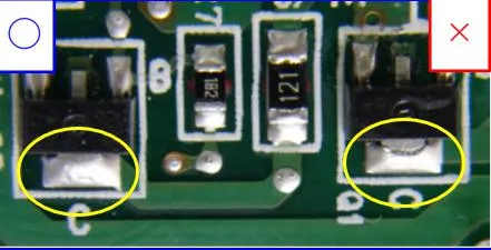 部品の耐久温度を把握してはんだ付けを行わないと、熱による部品の変形を招くことになります。はんだ付けは綺麗にできていても、部品が変形しているという不具合事例も存在します。